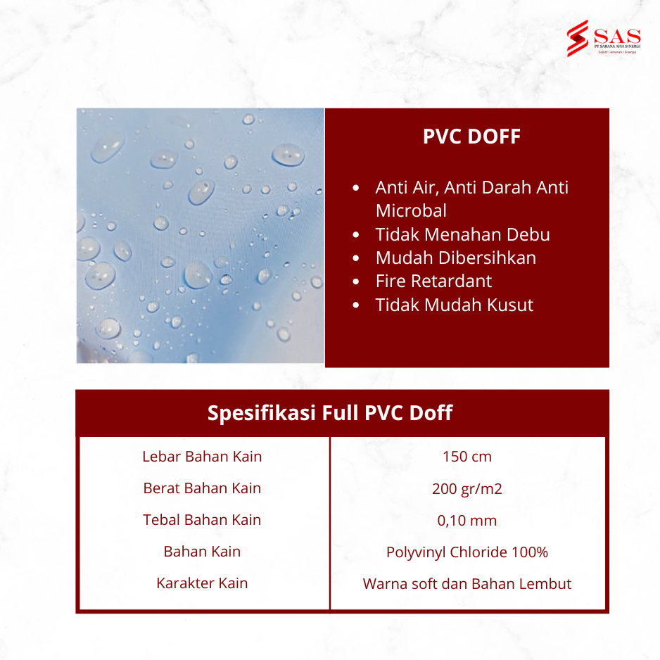 Bahan Kain: Polyvinyl Chloride 100%