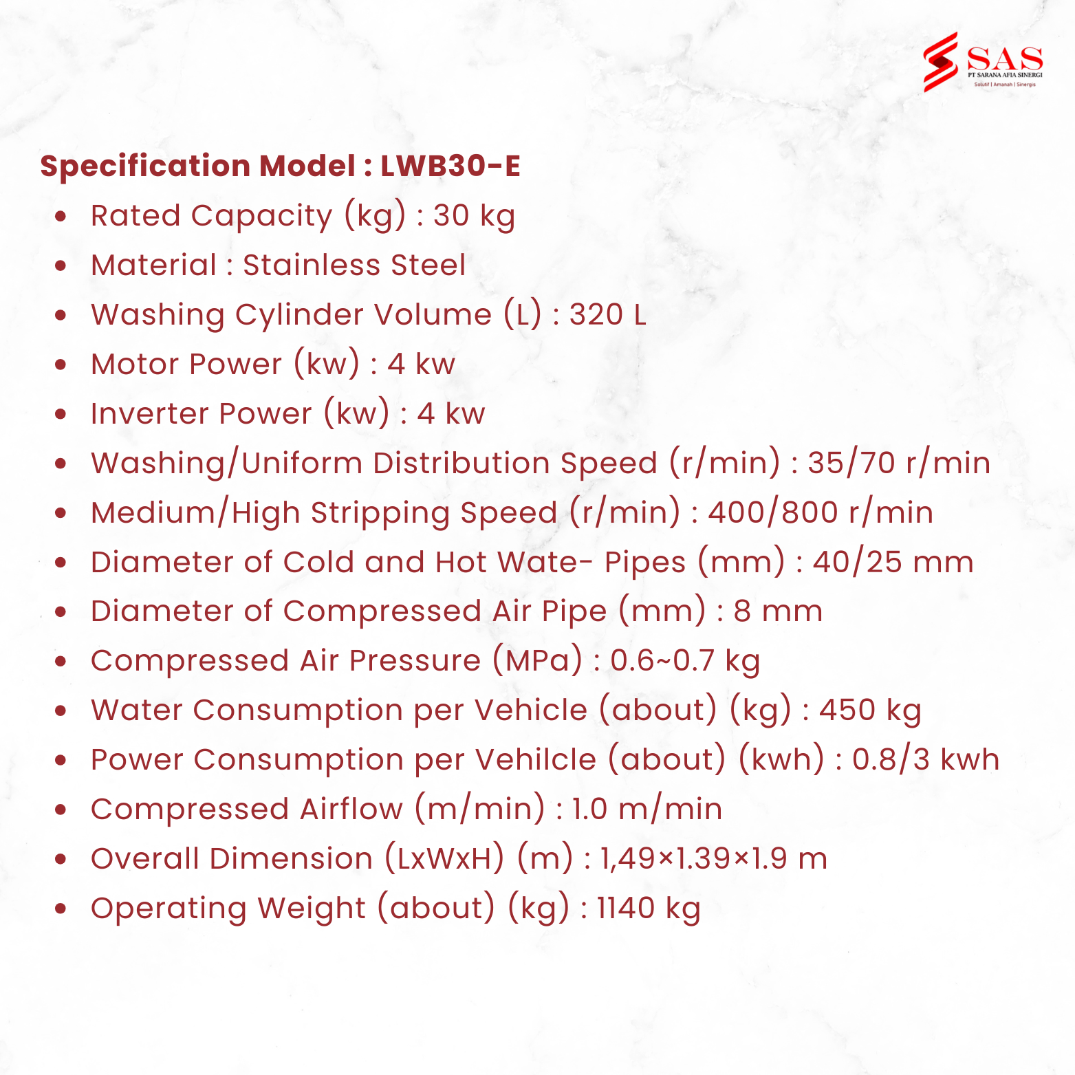 Specification Model : LWB30-E